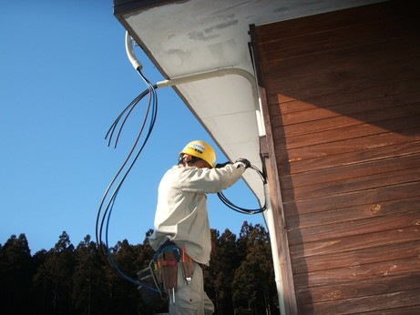 ↑雪の重みが直接かからないように電線の受点の位置を変更し、補強しました。