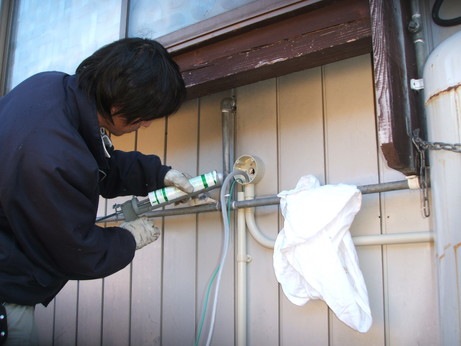 ↑IHクッキングヒーター用に回路を新設します。水が入らないようにしっかりとコーキングシールを行います。