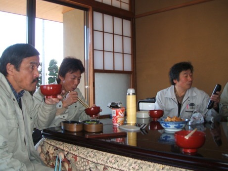 ↑お昼休みの風景です。お客様からきのこ汁をご馳走になってしまいました。O様、大変ありがとうございました。とても美味しくいただきました。