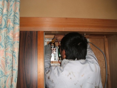 ↑分電盤もオール電化用の分電盤に交換です。