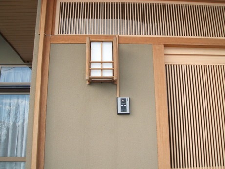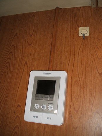 ↑インターホン設置完了!電線露出部分は目立たないよう、木目調のモールでカバーしました。