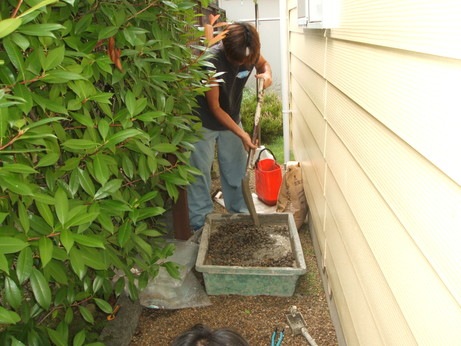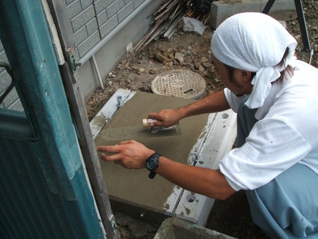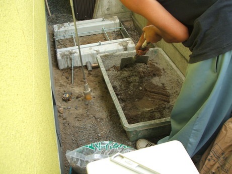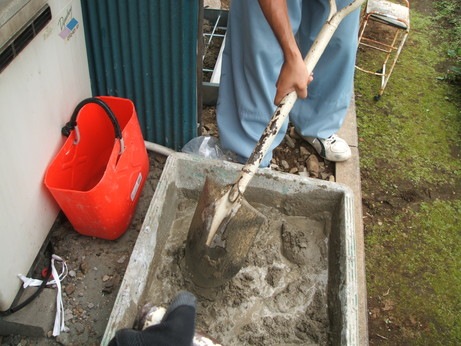 ↑コンクリートを練ってならして、基礎完成☆