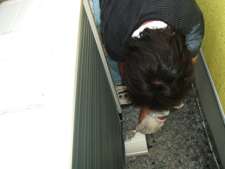↑コンセントとブレーカーを200V用に交換して、エアコンを設置していきます。