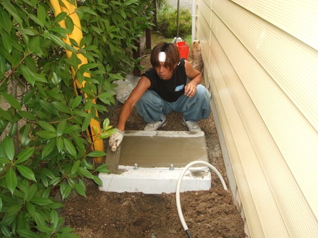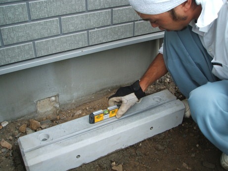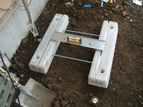 ↑エコキュートのタンクを載せる基礎コンクリートを作成していきます。水平器を使って慎重に作っていきます。