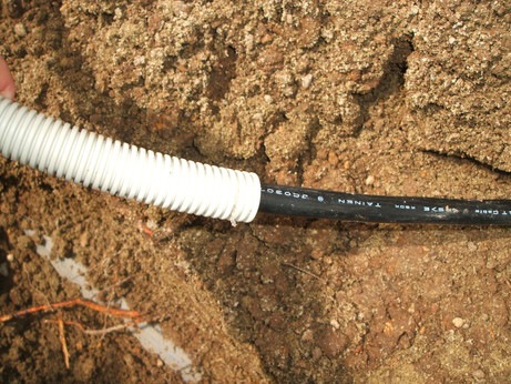 ↑今回は、地中埋設用のケーブルを、PF管という樹脂管の中に入れ、地中埋設により配線しました。これにより、見た目と対候性がアップします!
