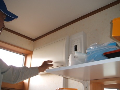 ↑住宅用火災警報器を取り付けていきます。無線連動式の製品は、どの部屋で火災が起きても連動してサイレンで知らせてくれます。法令で住宅にも火災警報器を設置することが義務付けられていますが、なにより安全確保に大きな効力を発揮します。