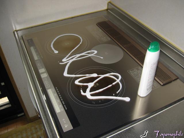 まずIHヒーター天盤へ豪快にクリームクレンザーを