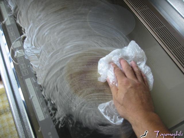 円を書くようにまんべんなく塗り拡げてください。汚れがひどい所は力をいれて