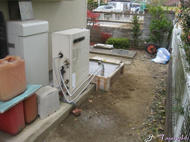 いつものように新規の位置に配管を立てて、既設のボイラーをずらして仮置きします。