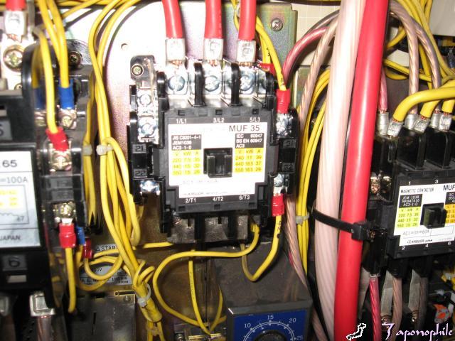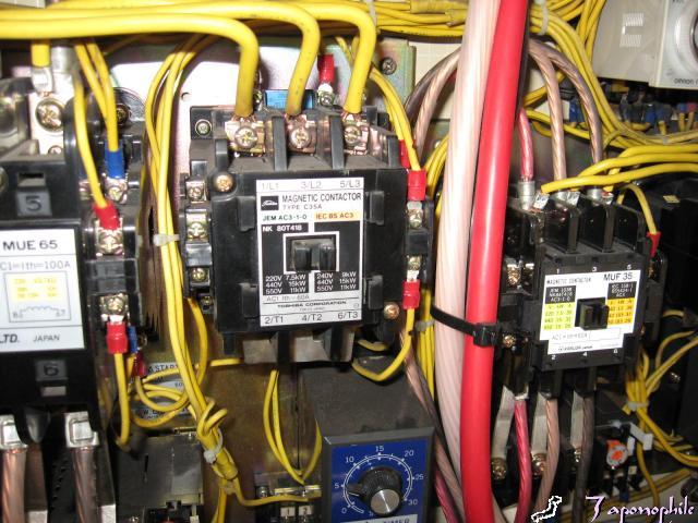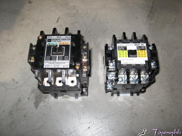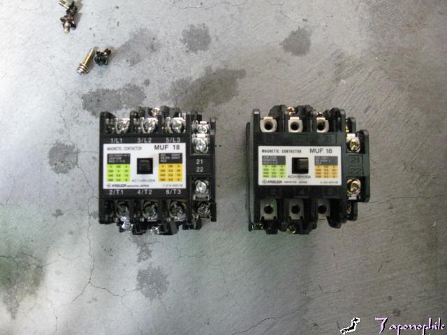 こちらの機械は、スターデルタ始動装置の始動側(スター)のマグネットが焼けていきなりデルタ直入れになっていました。もうひとつの方もかなり変色していたので、交換しました。