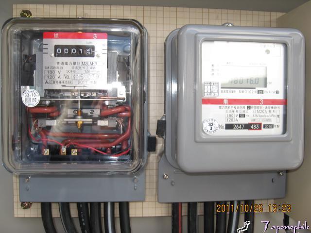 当時つけた電力計(オール電化の時間帯別契約)です。当時は売電側もマイコン式のメーターを設置していました。