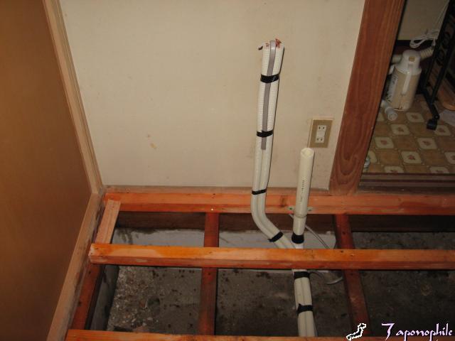 和室を改装して床板に張り替えするので、配管を先に床下に布設します。