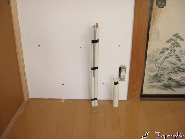 こちらは、エアコンの入れ替えっです。既設のエアコンの効きが悪くなったので、交換することになりました。{古い事も有り}