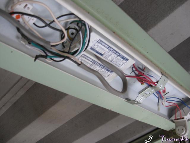 蛍光灯の器具を改造して(安定器・インバーターを外す)LED用のインバーターらしきもの(変圧・変流器?)をつけて、配線も接続し直します。