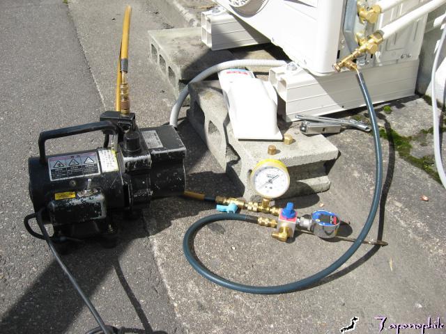 接続が完了したら、配管ないを真空引きします。