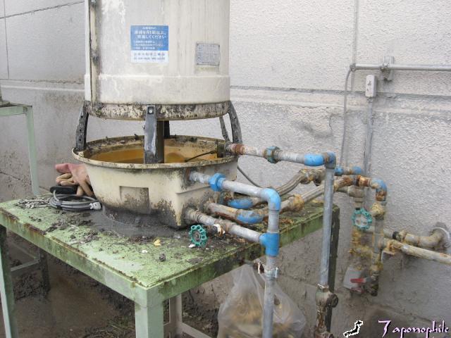 さて、今回は小型のクーリングタワーの清掃をしてきました。1台の機械の専用の冷却のためのものです。紙製品を扱っている会社で外部に紙ほこりが見えない程度ですが舞っている状況のため、クーリングタワーの中にそのほこりが入り込んで送水ポンプにまではいりました。