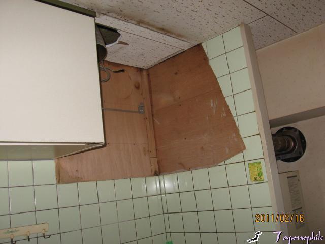 当初はレンジフードを付けてからタイルを貼ったらしくこのようにフードの形にタイルが残りました。
