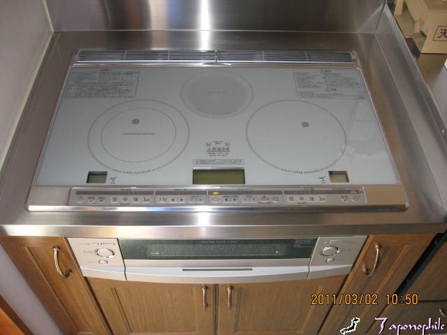 ガスコンロは、ビルトインなので外すのは簡単です。電源の配線をしてコンセントを取付ました。そして、IHクッキングヒーターのセットです。これで完了です。