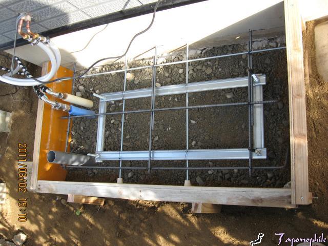 そしてエコキュートの基礎の準備をします。(仮枠を設置)