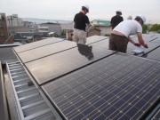 2015年5月1日 スタッフブログお客様の太陽光発電パネルにハイドロリックコーティングの工事をしてもらい最後の一軒が枚数少なかったので午前中で終了しました。時間あれば午後からでも自家用のパネルにもお願いできるか聞いたところ、できますとの事、急遽3階屋根に載ってる25枚のコーティングを行って頂きました。当店のパネルは経年7年経って居り 今年に入ってパネル拭きに上がっていません。案の定 黄砂と汚れで汚れていました。コーティングの効果は 後でないと結果は判りませんが。洗浄して頂いただけでもかなり発電量が違います。発電のレベル変化が頻繁で無く安定してます。日照が多くても発電レヴェルが頻繁に変化してたのが安定してます。これも洗浄の効果とコーティングしたことで、表面が汚れにくく 安定が続くことを期待したいと思います。
