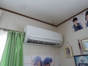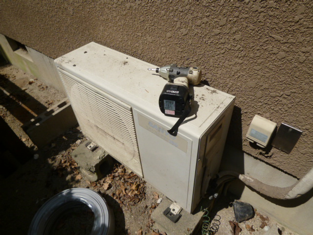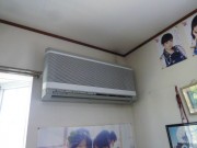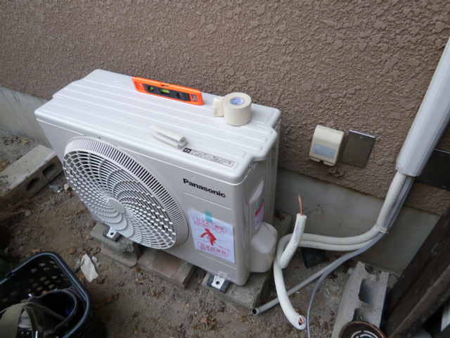 最近のエアコンの工事は交換、移設がほとんど、新規取り付けはほとんど無くなってきましたが、2件続きました。前回は子供さんが大きくなって、分かれると言うので、クローゼット風に使ってた部屋を模様替えしての設置、今日は、仏間がある部屋に取り付けです。お盆が近いためでしょうか? 室外機は2階のベランダに置きます。