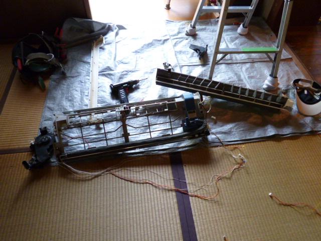 しかし時も経ち、エアコンクリーニングで分解掃除するとなると、問題です。前面パネルに、さがーるメカ、空気浄化機器等がぶら下がってます。機種的には高級機種ですので、オゾン発生器、吹き分けのためフラップモータが4個、リミットスイッチ等電子部品が要所に点在して取り付けられてます。