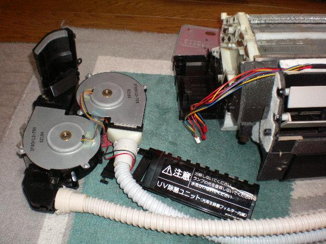 単純に分解慣れしてますので、アウターカバー外し電装部品も順次取り外します。今回はリンフローファン、エバポレータも分解して、流水洗浄します。電装部品を外し、換気部品の取り外し、水洗浄できない電装品と洗えるプラ部品に区分けします。
