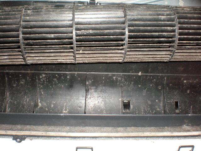 今回の機種は結構新しい方でドレンパンとバックパネルが一体構造になってます。もちろんバックパネルも洗います。エアコンの臭い、カビの集中する箇所がこことラインフローファンです。ともにザブザブ、洗剤かけてしばらく置き洗ってから。洗剤が残らないように流水で何回も洗い流します。洗剤が塩素系ですので残りますと後プラが硬化して割れる恐れが有るためです。特にドレンは念入りに流します。