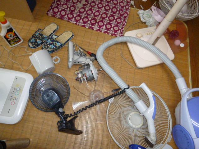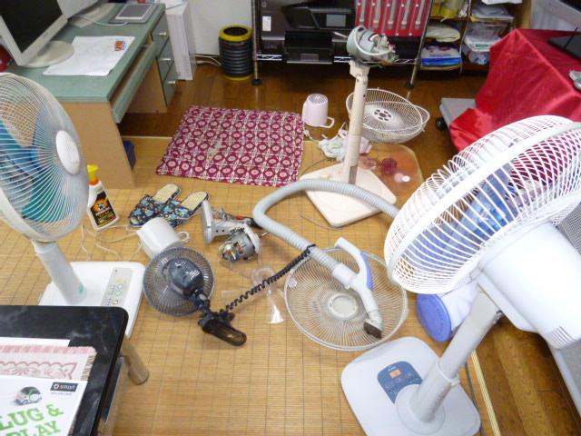 スタッフブログ 2012年10月24日自家使用の扇風機を掃除して、ストーブと交代させます。いつもは、10月の末ではなく9月の末なので今年は1ヶ月あまりずれて、暑い日が長かったことが判ります。しかし1軒の家にこれだけ多数の扇風機ある家は無いでしょう。全てあわせて6台全て分解、注油して埃取り補完の準備をします。これと交代にファンヒータの登場です。