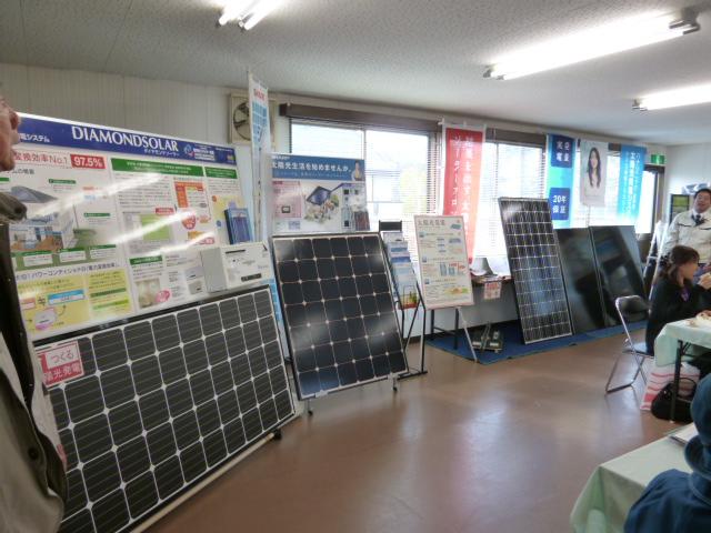 会場は直ぐに判りました。お天気もよく、会場の集会場に人が集まって来てました。展示品は太陽光、エコキュート、IH二特化してますが、すっきりした落ち着いた雰囲気です。お客様も口コミから集まって来られてますので、お客様同士のお話も弾んでいます。