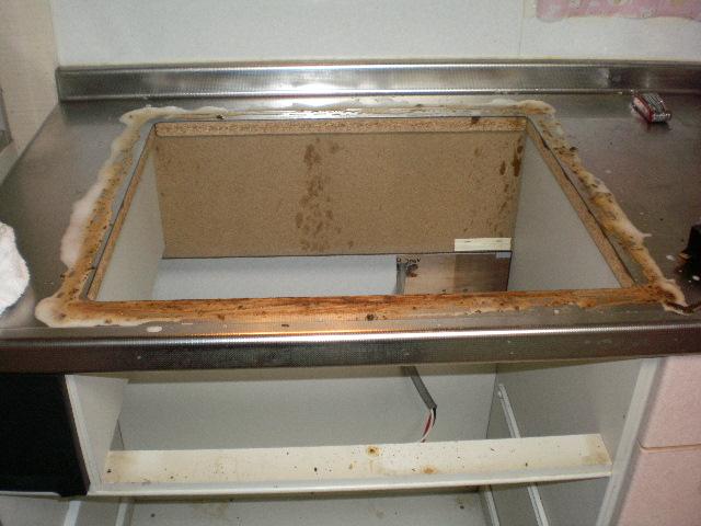 再訪問した時にはグリルで焼き物されてましたので取り外し後グリルを上にして熱を冷まして置きます。その間に外した外枠の廻り周囲がかなり汚れてますので、洗剤使って掃除して置きます。