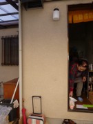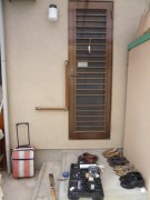 楯に1本よりかL型にしたほうがいいのでこうしました。ここは深い屋根がありますので、雨懸かりませんので屋内用の木のものにしました。訪問時不在でしたのですが、屋外ですので、勝手に入って取り付けておいてと言われました。