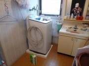 洗濯パン出来上がり洗濯機乗せる頃には エアコンの部品も天日干しで乾き、洗濯機設置後今度は組み立てに入ります。ここでちょいと休憩がてら綺麗になったファンお客様に見せながら談笑、お客様異はクリーニングの必要性が認識頂けたようです。試運転で洗濯機動いて間に組み立てます。チョイファンのはめ込みに苦労しましたが、完了試運転しますが、リモコンの作動が変です。マニアル運転に換えられませんし、時計のセットもリセットしても操作できません。一応自動お任せでは運転できますが、温度の変更も出来ません。リモコンの不良のようです。お客様は自動運転できればいいとのことですのでこのままとします。
