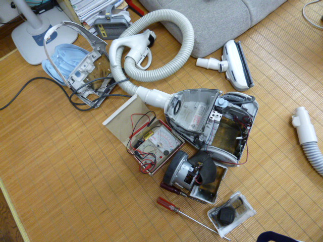 スタッフブログ 2014年6月28日久々の珍しい修理の依頼です。掃除機壊れたらポイッ!てのは当たり前ですが、お客様がどうしてもこれが気に入ってるとと言うので 修理品、宅急便で送ってこられました。このクリーナは 当店がお勧めした今は無いS社のクリーナーです。確かに他のメーカから特異に見られたらしいですが、私このメーカしか売って無くて特異性感じませんでした。その1つが サイクロンでも紙パックでもどちらでも使えるというもの、サイクロンは ケーシングの掃除が重要で特に水洗いしたい、乾くまで掃除機使えない そのとき紙パックはめて使い、乾いたら戻すと言う発想です。逆に紙パック切らしたらサイクロンでとこの考えが他社には無かったそうです。