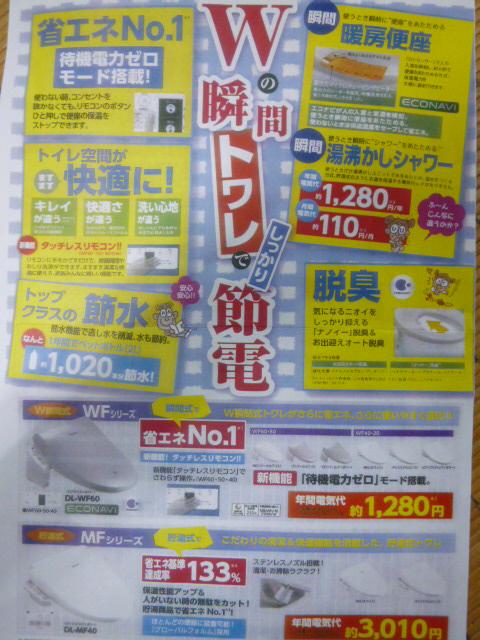 そこで当店から 毎日使うものだから省エネ温水便座をご紹介させて頂きま~す。