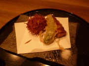 海老つみれ伊賀揚げ(見た目毬栗風) 鰻山椒揚げ、炙りサーモン寿し、