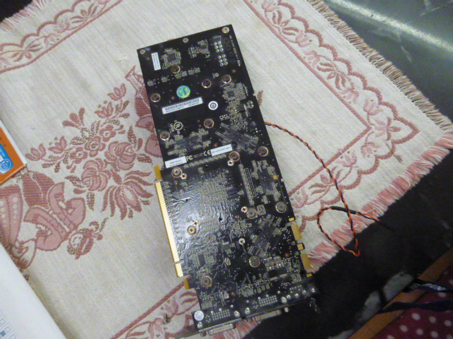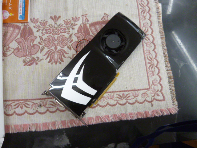 手持ちの貸出機に入ってるビデオカードを引っぺがし、取り付けます。スペックダウンになりますが正常に戻りました。この壊れたビデオカード日本橋の近所で 売り出しイベントに参加した帰りにPCショップでバーゲンで買ったもの それでも諭吉さん一人分はしました。まともに買えば諭吉2.5人分はするものです。さすが中身がどう壊れたまでは判らないので諦めです。
