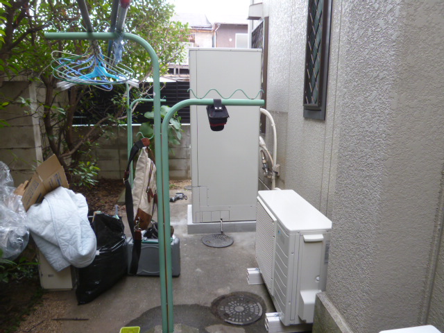 本日、日曜日ですがM様宅の給湯器をエコキュートに交換します。