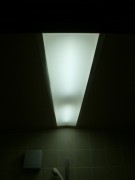手を怪我して片手しか使えないので、ヘルプお願いして2人で作業しました。遮光のアクリルのルーバーを損傷しないよう枠を外して行いました。点灯、すごく明るくなりました。お客様も明るさに大満足して頂きました。