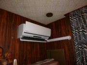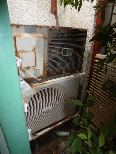 古いエアコンの室外機は さらに古い2階のエアコンの2段積みに成ってます.旧エアコンの解体に多くの時間を取られました。以前は 全て一人仕事で行ってましたが、今回は初めてヘルプして頂き大変助かりました。それでも2人作業で夕方近くまでかかりました。室内機の取り付けも内部ダクト使って部屋の楯の方向に取り付け変更しました。