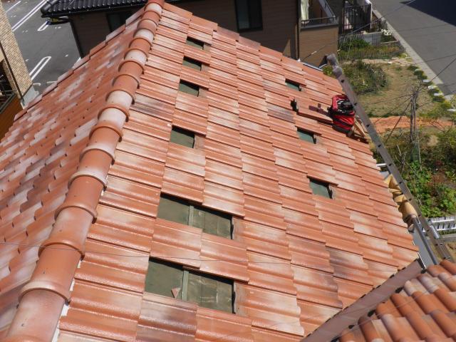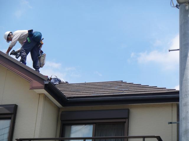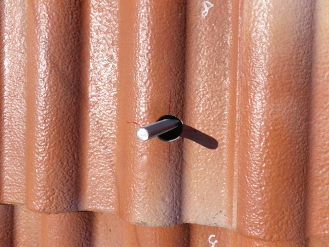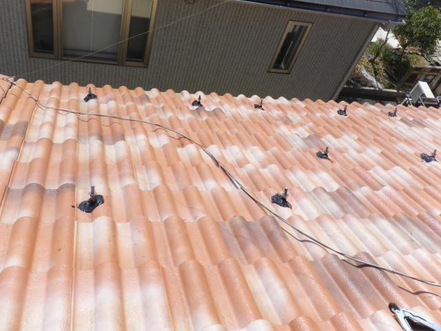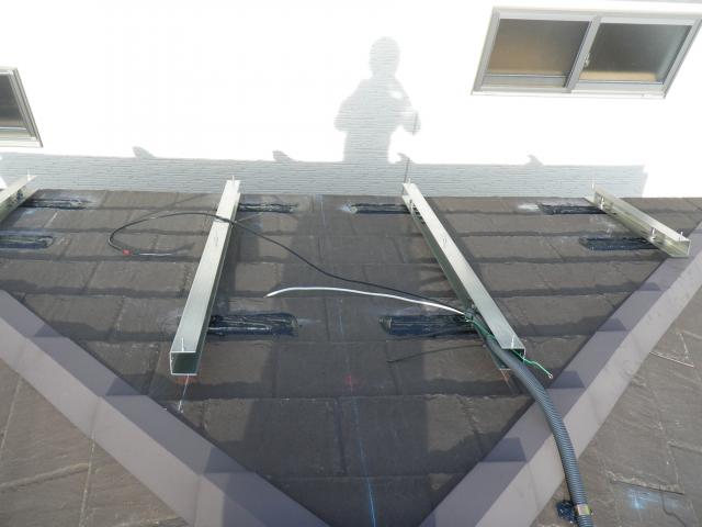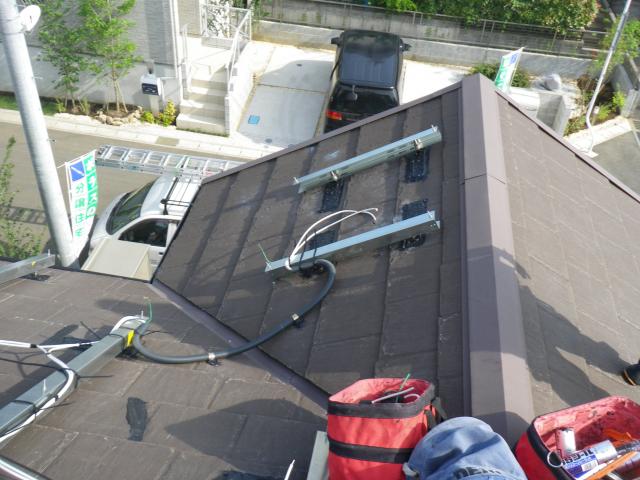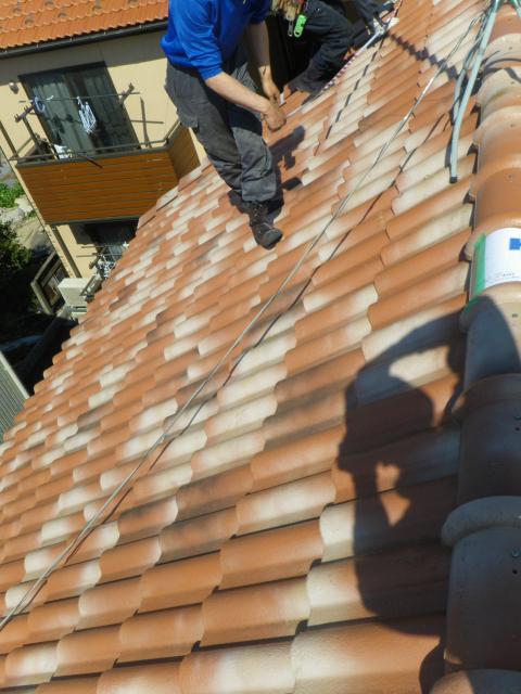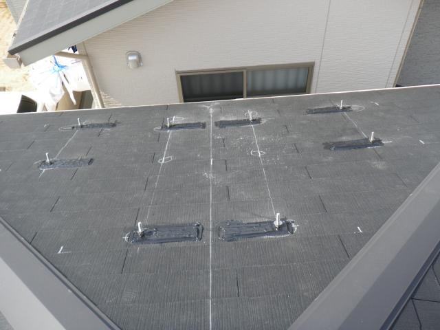 屋根に上りアンカー金具を取り付けています。(*^_^*)