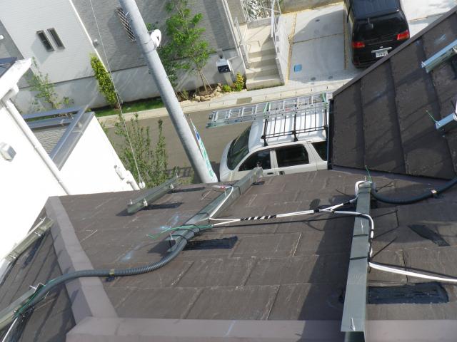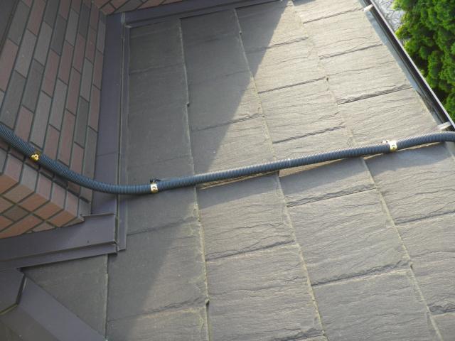 ケーブルは屋根から壁を伝わせて下に降ろします。