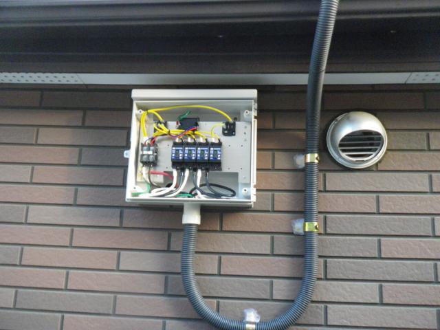 発電した直流の電気を家庭で使える交流の電気に変換するパワーコンディショナーにつなげ、太陽光ブレーカーを設置しました。(●^o^●)