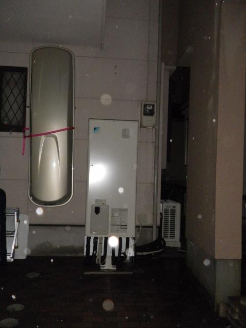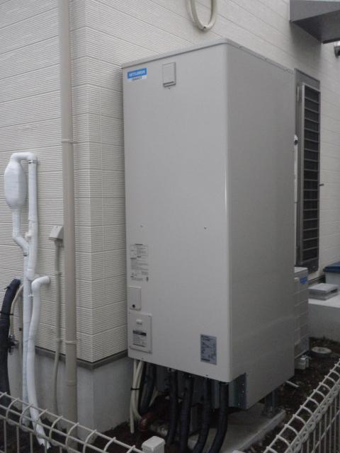 エコキュート(SRT-HP37WUZ5)とヒートポンプも設置。凍結防止のためヒーターバンドも付けました。