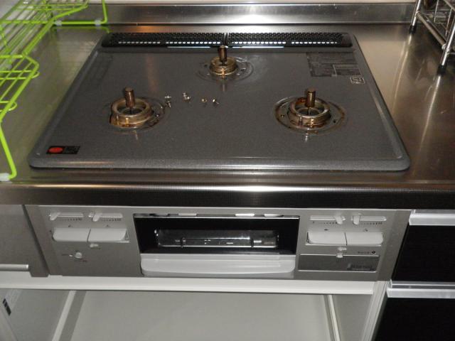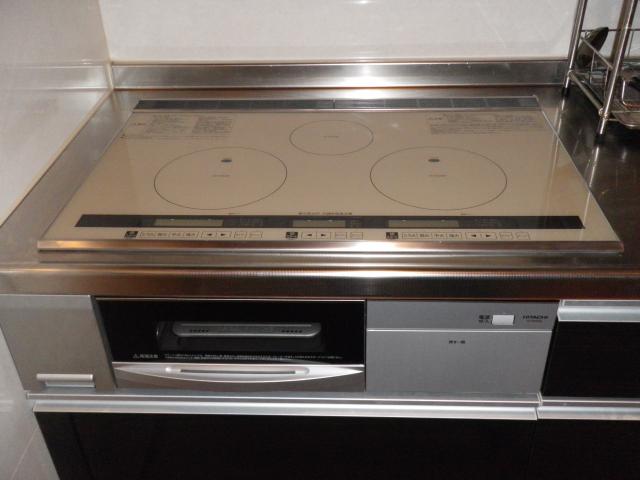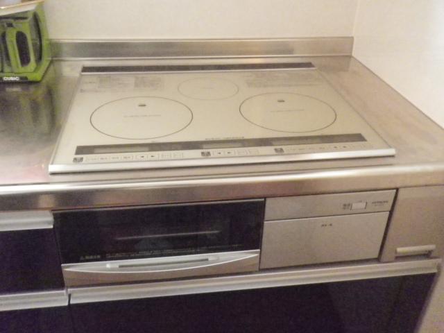 ガス台を外しIHクッキングヒーター(日立 HT-E20TS 最高グレードのダブルオールメタル)を取り付けました。(^-^)