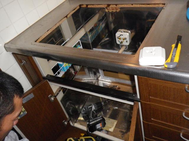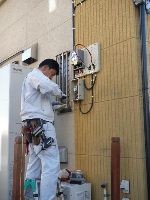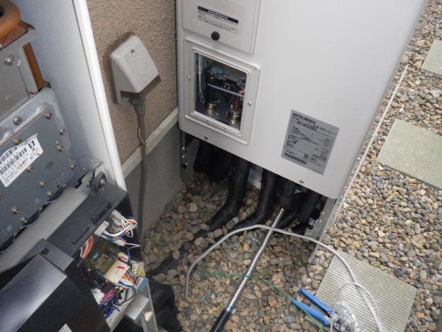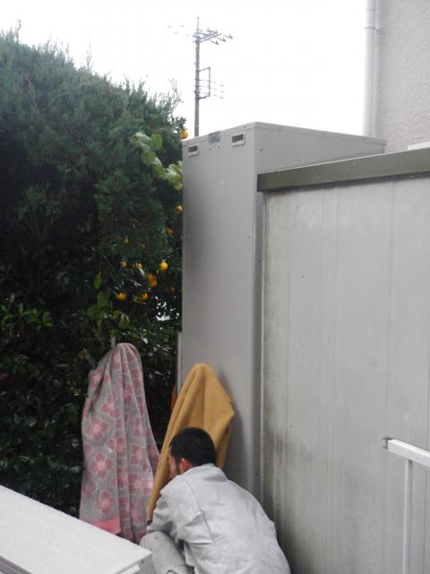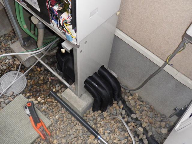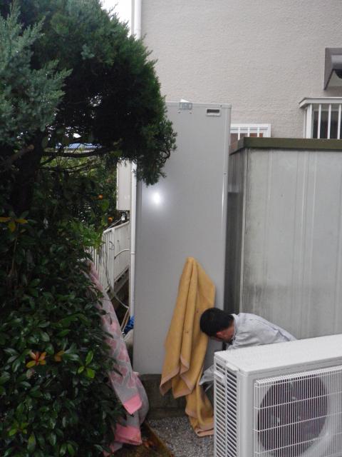 越谷市Ⅰ様邸のエコキュート設置工事の様子を