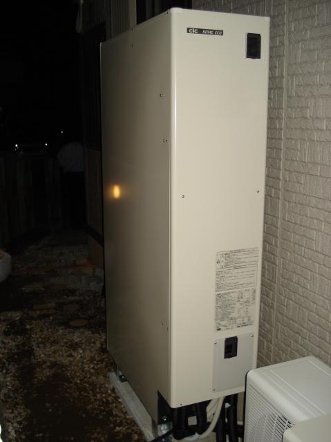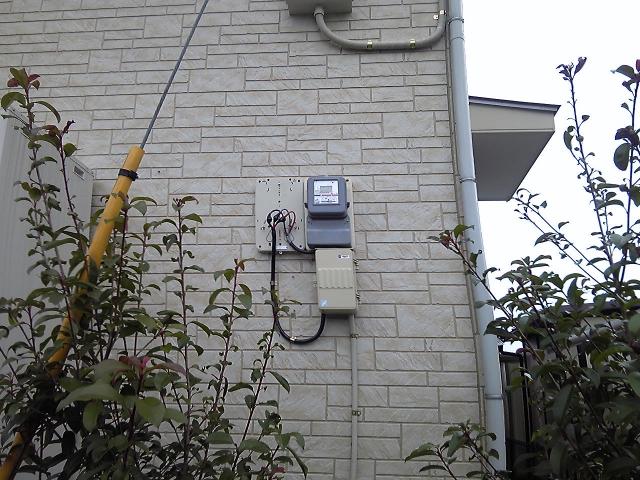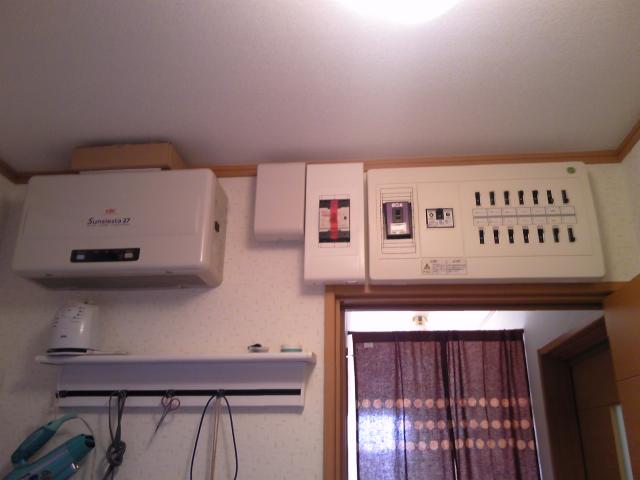 左にあるのがパワーコンディショナで、真ん中が太陽光のブレーカです。