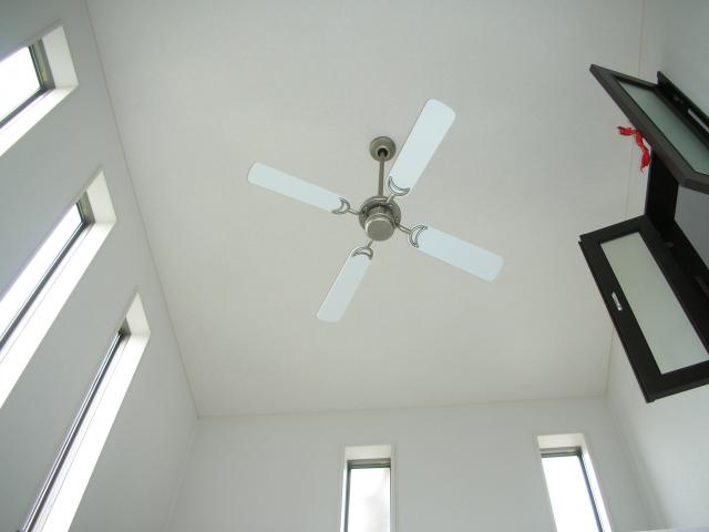 暖かい空気が上にいってしまうのでこのシーリングファンで