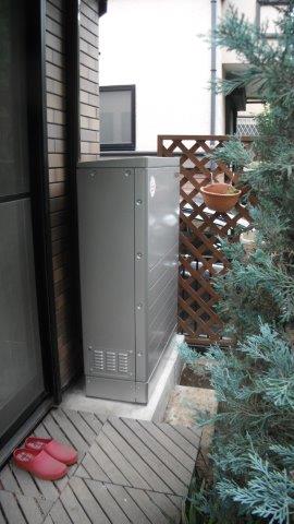 大気熱を集めて熱エネルギーにかえるヒートポンプを利用しているところです。