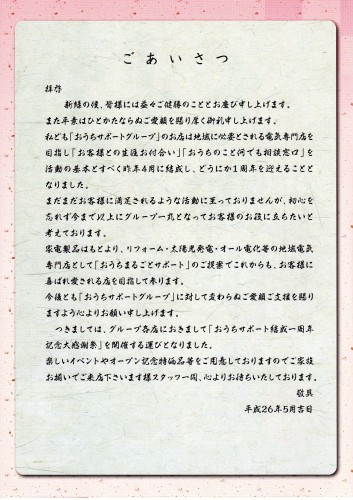 当店のお客様には既にお手元にお届けさせていただきました